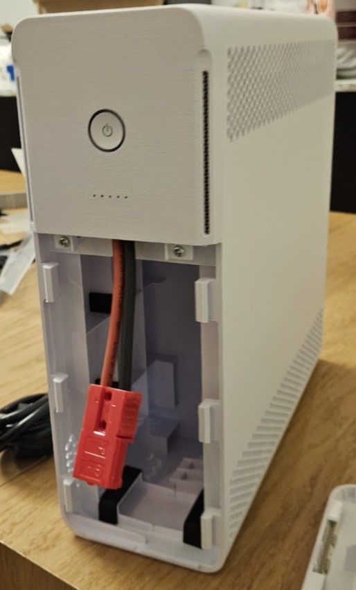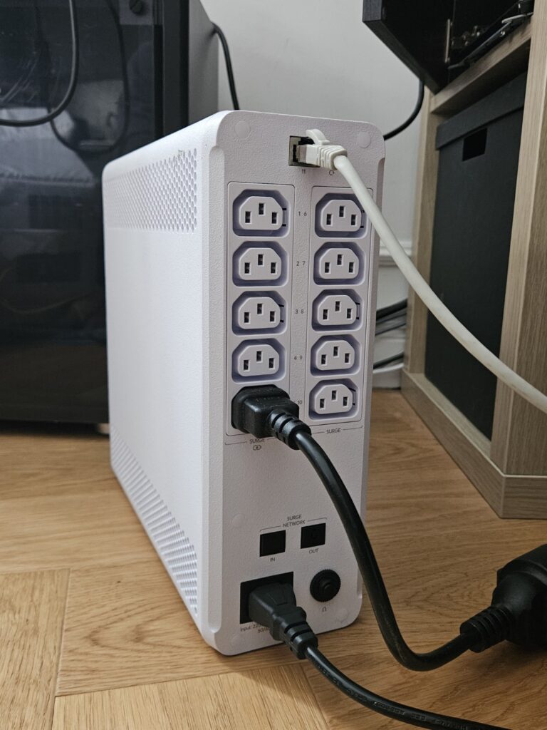 The UPS has a 108 Wh battery, which clearly isn’t meant for extended outages.