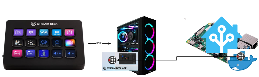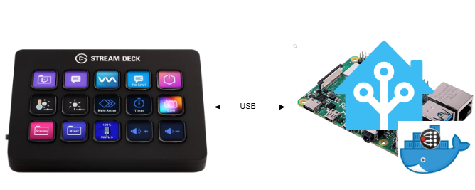On the HomeAssistant Pi runs a Bitfocus Companion Container (Add-On). The USB is passed through to the container. (Bitfocus Companion in the container still connects to HomeAssistant via the REST-API)